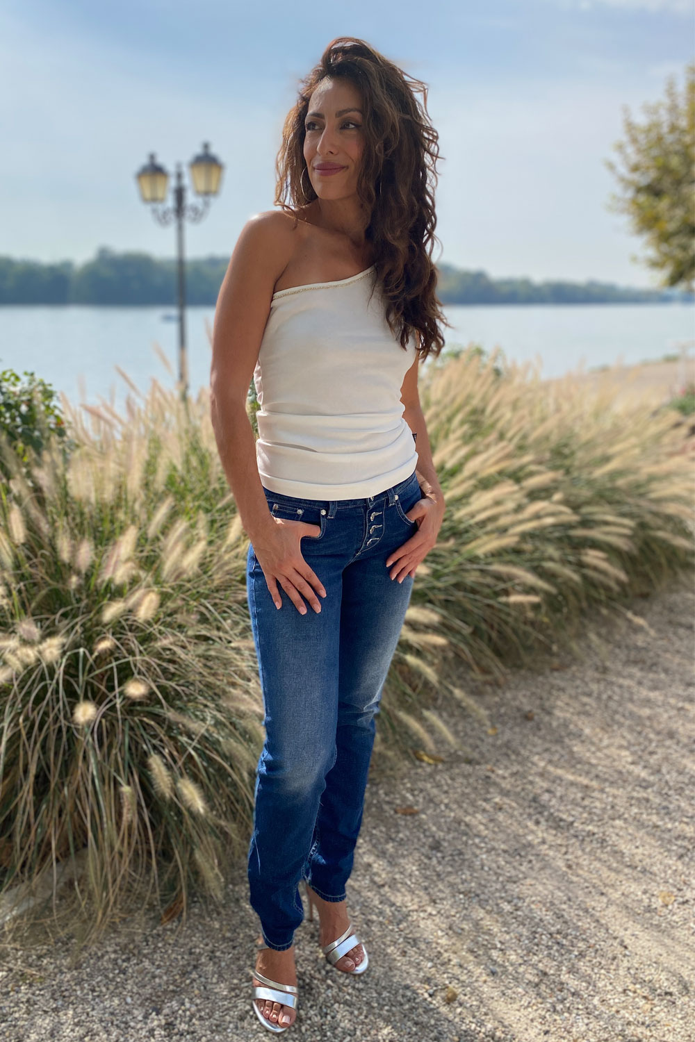 94% Baumwolle 6% Elasthan, Made in Italy, elastisches Denim für perfekten Sitz, Beine schmal zulaufend, hochwertige Knöpfe mit Label-Gravur, Five-Pocket Style, feine Webetiketten, Designer-Waschung