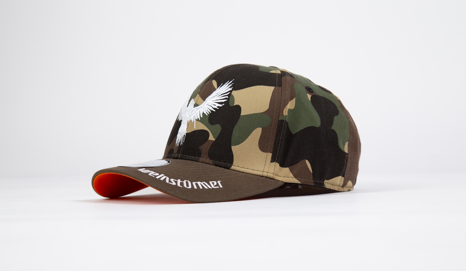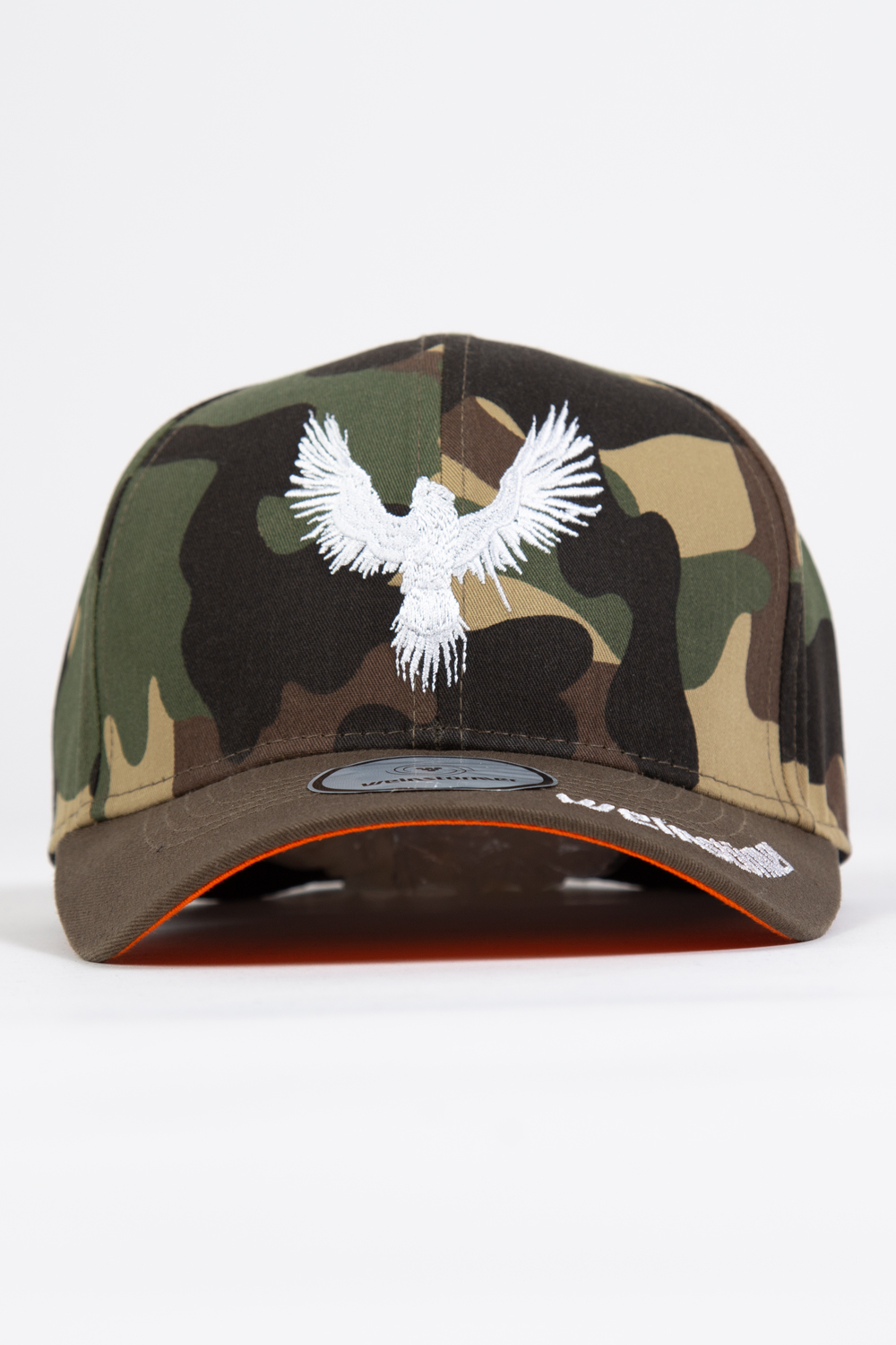 Die 6-Panel Base Cap aus Baumwolle überzeugt durch hohen Tragekomfort und ihr einzigartiges Design. Die Kombination camouflage/orange macht sie zum echten Hingucker. Sämtliche Hardware ist owner-designed.Viele Details machen die Cap zu einem echten Highlight. Hochwertige grunge-crow Stickerei auf der Front, Logoprägung am Verschluss und eigenproduzierte Etiketten zeugen von hoher Qualität. Größe ist verstellbar.