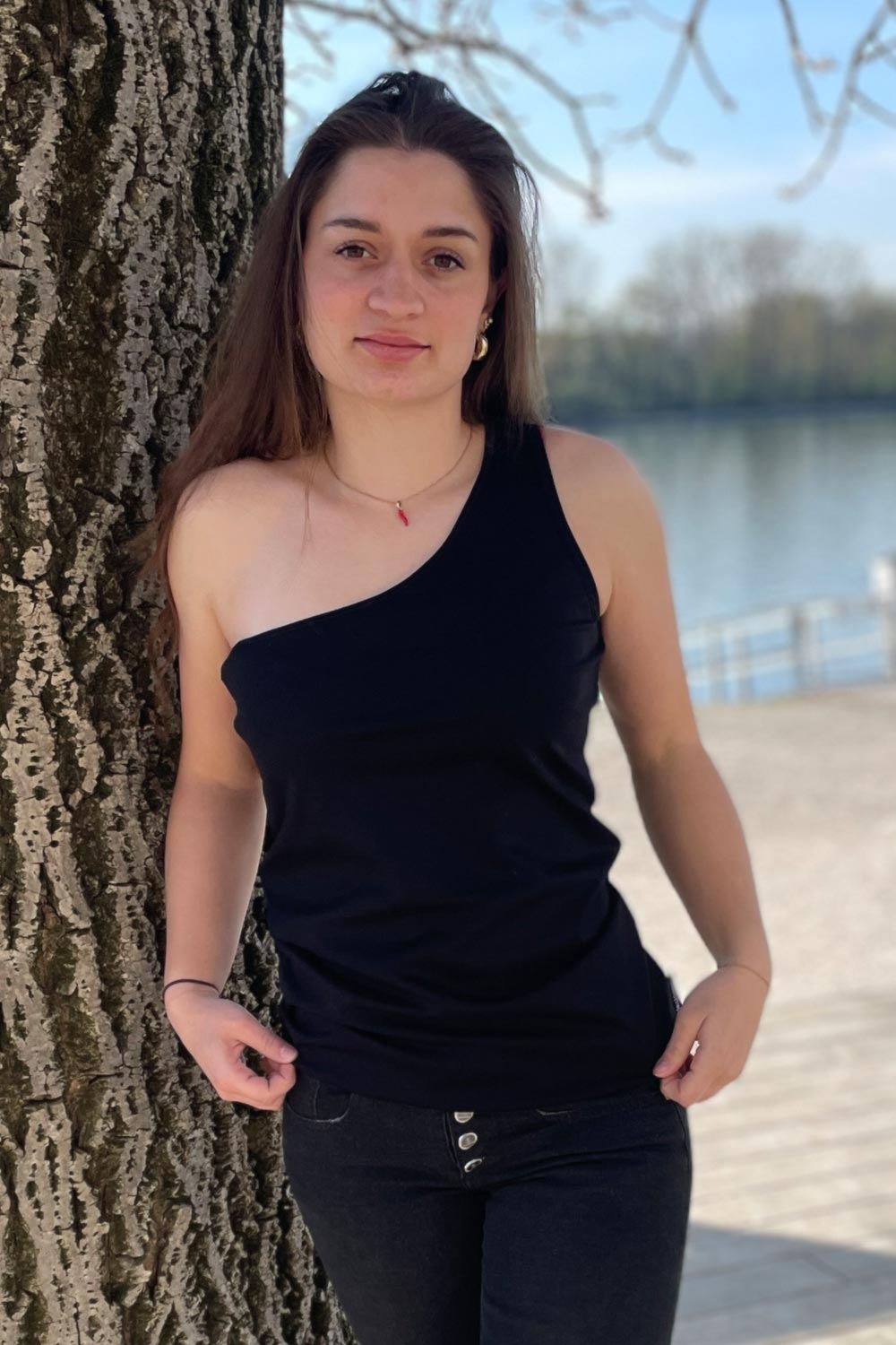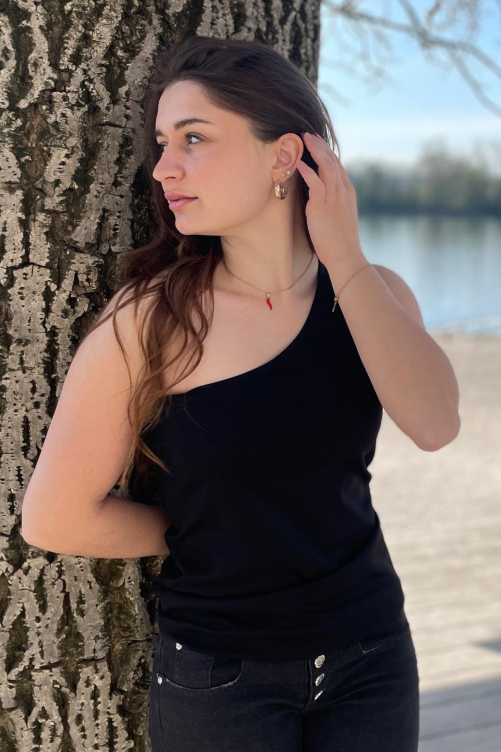 “Nicht ganz symmetrisch. Aber ganz schön cool.” Dieses Shirt bricht mit Konventionen – auf der einen Seite mit Träger, auf der anderen fällt der Stoff locker diagonal. Der asymmetrische Schnitt bringt Spannung in jedes Outfit, egal ob in klassischem Weiß oder tiefem Schwarz. Rockig mit Lederjacke, sportlich mit Sneakern, elegant unter dem Blazer – dieses Teil macht alles mit. Keine Regeln, nur Möglichkeiten. Ein echtes Highlight, das Freude am Kombinieren weckt.