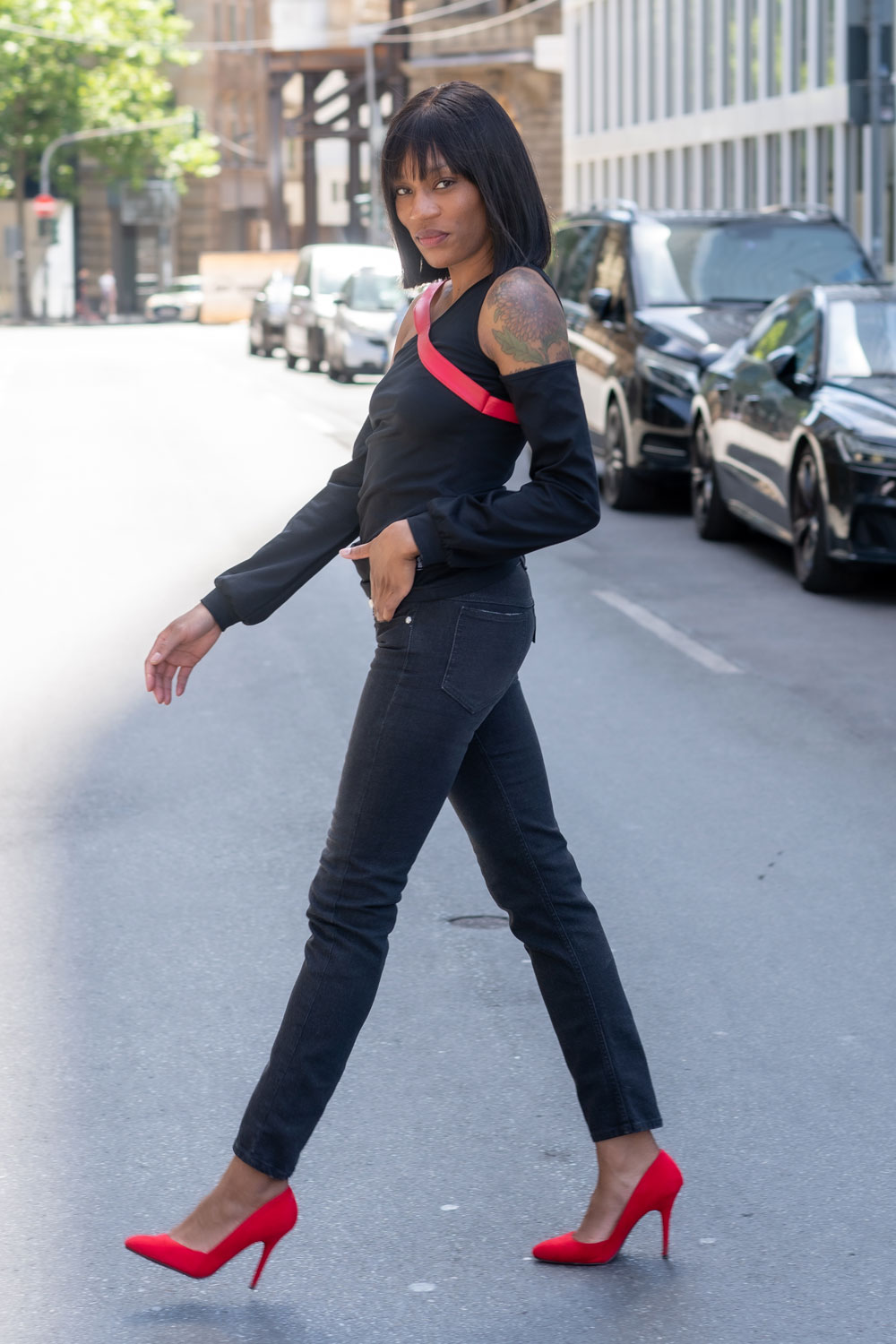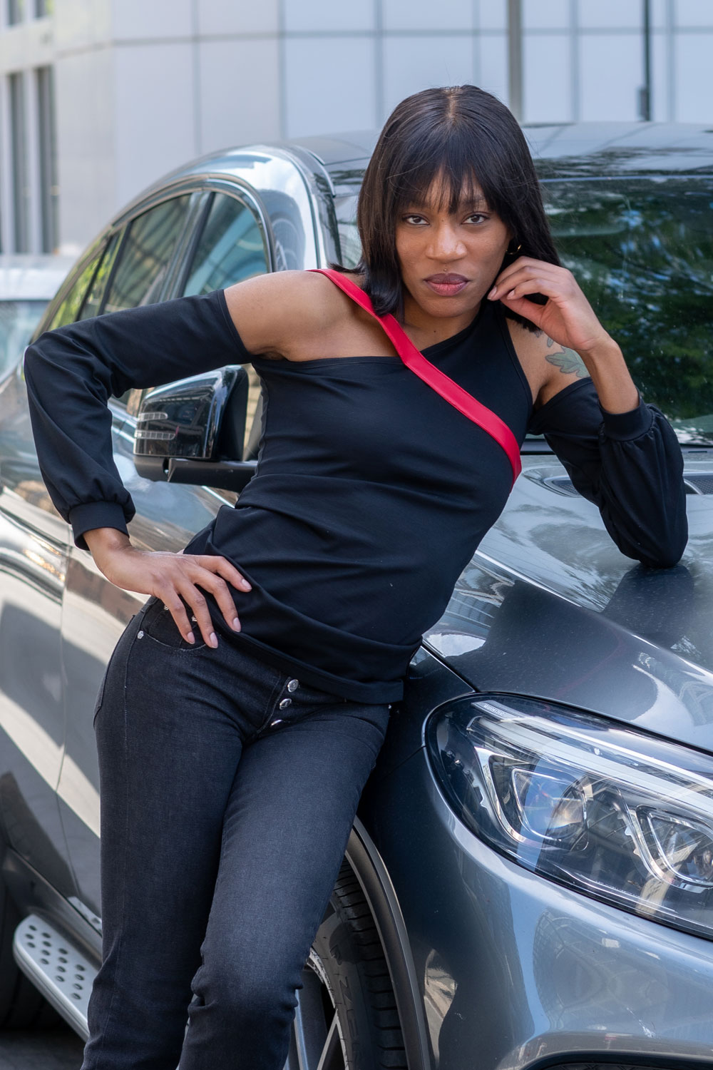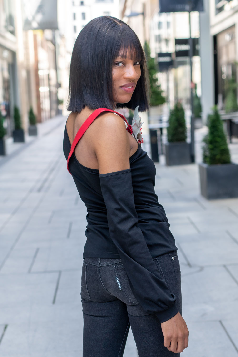 An unserem Oberteil Anthea haben wir lange getüftelt. Herausgekommen ist ein einzigartiges Oberteil mit einem ausgefallenen Schnitt in hochwertiger Verarbeitung. Die schulterfreie Bluse in schwarz besteht aus 100% GOTS zertifizierter Biobaumwolle und ist handgenäht in Deutschland. Das Band sowie die Blüte bestehen aus veganem Leder. Die Blüte kann je nach Belieben angebracht oder weggelassen werden (Druckknopfsystem). Dieses Designer Oberteil bietet einen hohen Tragekomfort und sorgt für ein absolutes edles Erscheinungsbild. Hochwertig, stilvoll und 100% nachhaltig. Etwas für den besonderen Geschmack!
