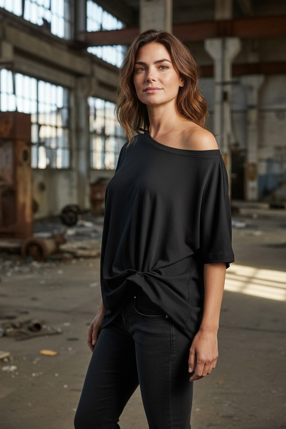 Minimalistisch. Kraftvoll. Selbstbewusst. Schwarz geht immer – aber dieses Schwarz geht weiter. Unser Oversize-Shirt vereint lässige Eleganz mit einem rebellischen Twist: Die offenen Cut-Outs am Rücken machen es zu einem echten Eyecatcher. Von vorne clean und puristisch, von hinten überraschend und stark. Ein Shirt für Frauen, die keine Trends brauchen – sondern ihren eigenen Stil leben.