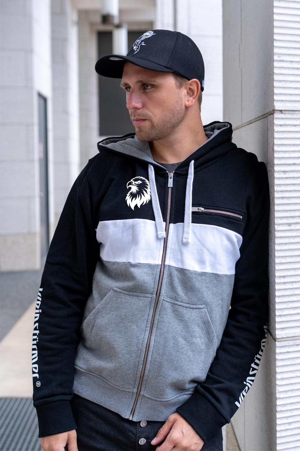 100% GOTS Biobaumwolle, Made in Portugal, Kängurutasche, hochwertiger Metallreißverschluss mit Gravur, extra weite Kapuze, extra breite Kapuzenbänder, Brusttasche mit Metallreißverschluss, hochwertiger Label-Siebdruck, feine Webetiketten