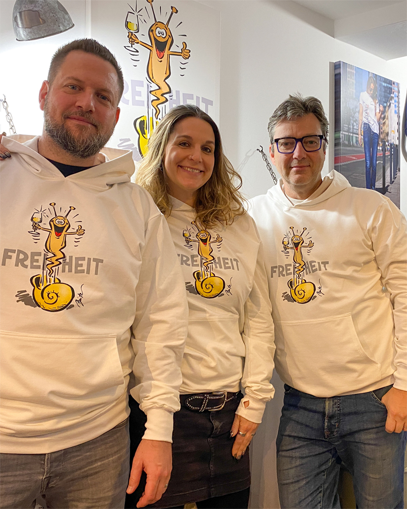 Freiheit für Mode und Kunst. Gemeinsam mit dem freien Maler und Comiczeichner Michael Apitz haben wir uns unserem Herzensthema "Freiheit" gewidmet. Michael Apitz, bekannt für seine außergewöhnlichen Zeichnungen und Fähigkeit, lebendige Charaktere zu schaffen, hat unsere Vision perfekt umgesetzt.